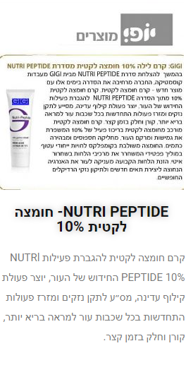 NUTRI PEPTIDE -סדרה פעילה המשלבת בין מרכיבים טכנולוגיים לחומרים טבעיים להשגת תוצאות מהירות בקליניקה והמשך טיפול בבית.